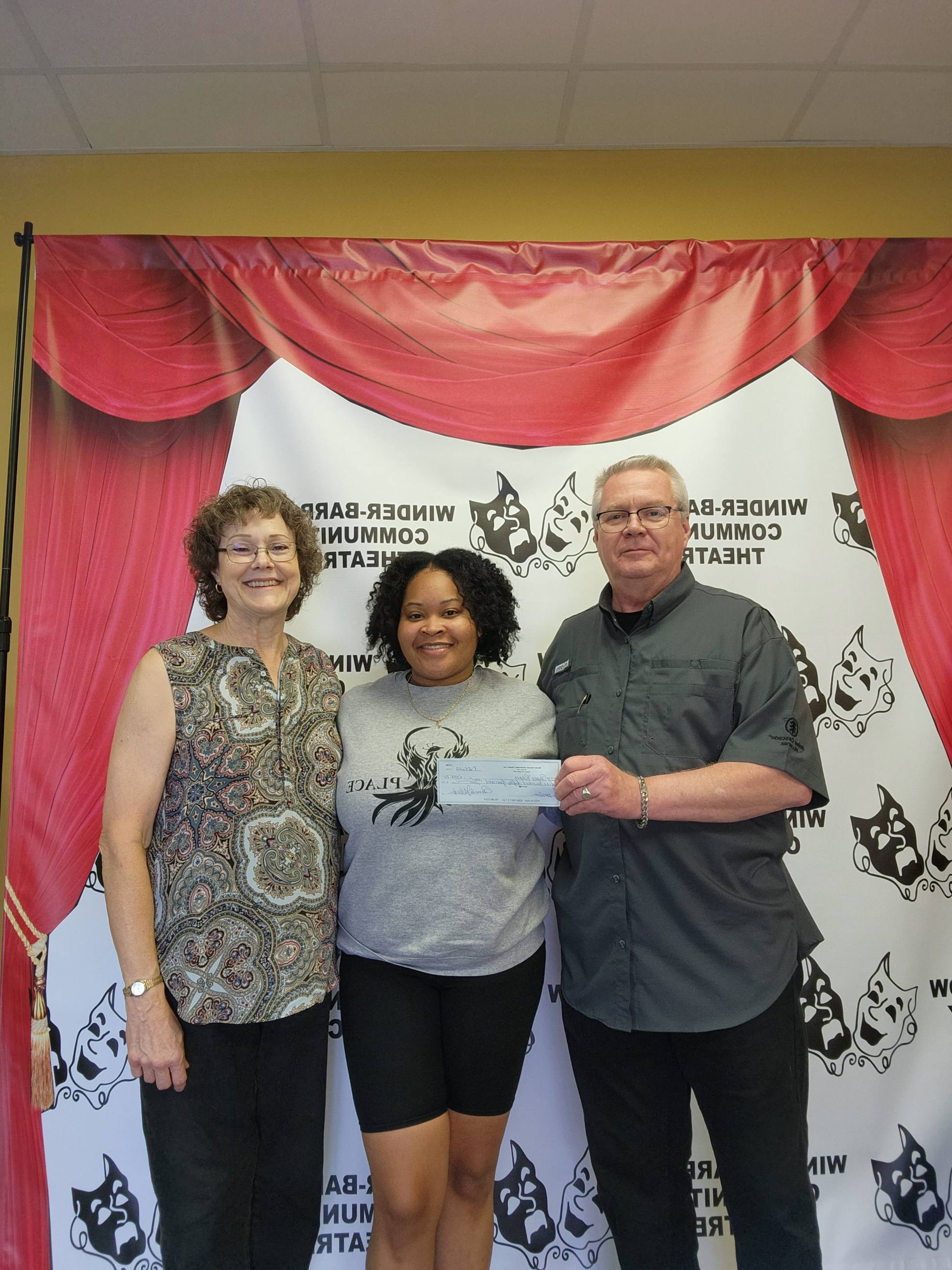 Winder-Barrow Community Theatre recently presented the play, "Almost, Maine", as the third play in their 2022 Season. WBCT chooses a local nonprofit organization to receive a part of the ticket proceeds from each of their plays, and Peace Place was the chosen group from this show. Peace Place, Inc. empowers victims, survivors, and our communities to break the cycle of domestic violence through the provision of safe shelter, supportive services, and community awareness in Banks, Barrow, and Jackson counties. The photo shows Tery Overbey, President of WBCT, and Pam Veader, Treasurer, presenting the check to Alexis Tuggle, case manager for Peace Place.
