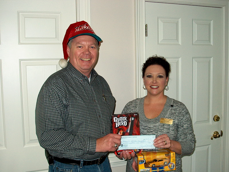 PHOTO: Tery Overbey, President of WBCT, presents a check to Meg Loggins of Barrow County Holiday Connection.